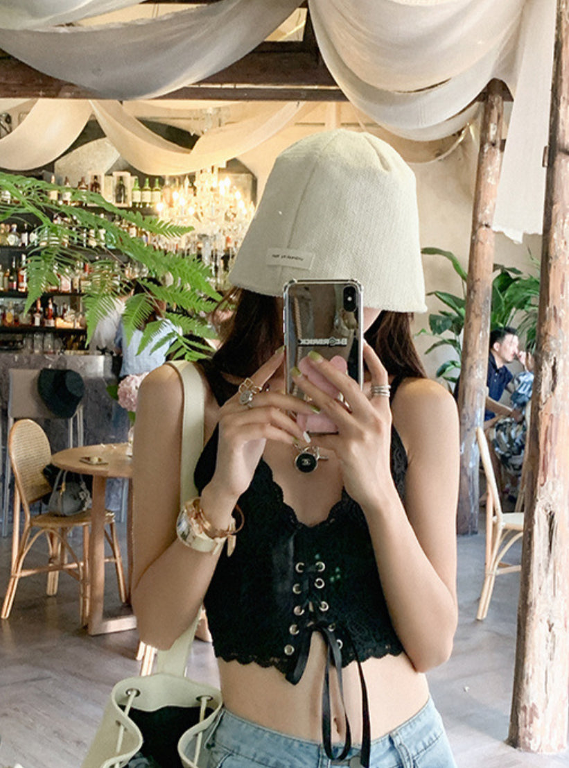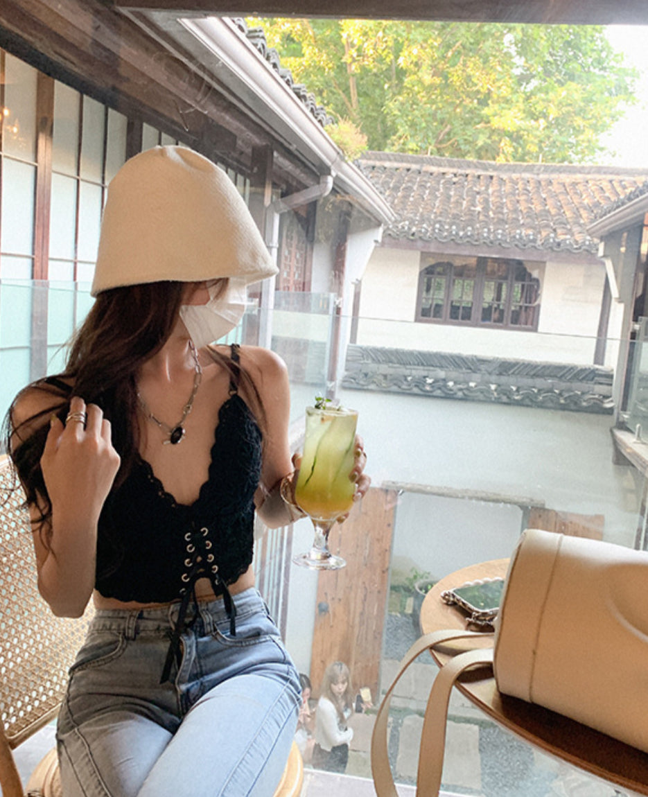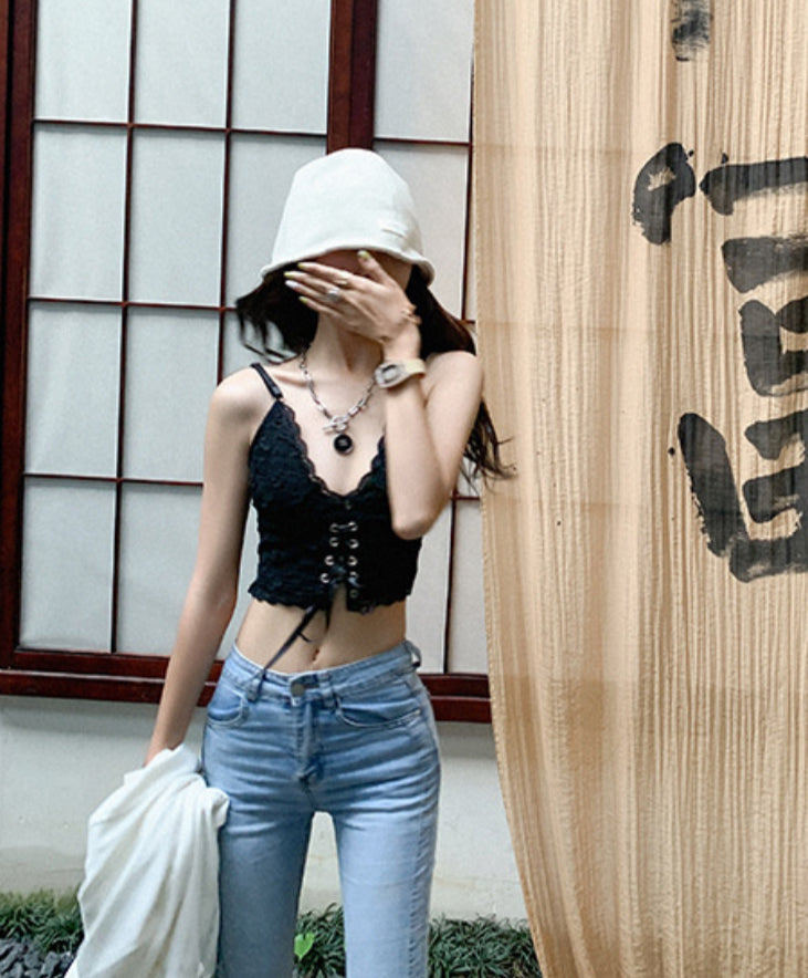 Lace Cropped Tie-front Camisole